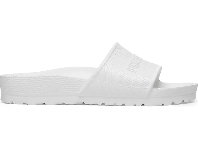 Take your favorite Birkenstock’s beach-side in the waterproof Barbados EVA Sandal. This sporty slide combines the convenience of your go-to sandal with the arch support and comfort of your favorite insole. Keeping you comfortable for hours on end, the legendary Birkenstock footbed makes it feel like you're standing in sand and promotes overall foot health and wellbeing. Arch support is hard to get from a sandal. The Barbados Sandal has contoured support that runs alongside and across the arch of your foot for all day comfort. The deep heel cup holds your heel bone firmly in position to stabilize the back of your foot and activate your calf muscles for a more efficient gait. Plus, raised indentations at the front of the footbed let you spread your toes out to support your natural rolling motion as you walk. Made from one piece of light, flexible and waterproof molded EVA, let your toes catch a breeze post-run or poolside in the Birkenstock Barbado EVA Sandal.