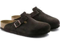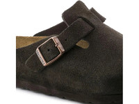 The Birkenstock Boston Soft Footbed lends a fashion-forward edge to any style. Velvety suede gives the laid-back look classic, every season appeal. Featuring an additional foam layer for cushioning, the soft footbed offers extra comfort plus go-all-day support. Details: - Cushioned BIRKENSTOCK soft footbed creates custom support with wear - Classic suede upper - Suede footbed lining helps keep you comfortable - EVA sole is flexible and lightweight - Adjustable strap with metal pin buckle - “Made in Germany” quality stamp on footbed