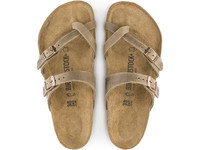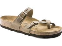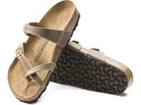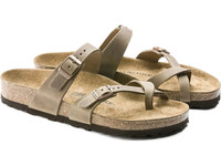For fashion-conscious men and women looking for style and comfort, the Mayari Leather Sandal gives you Birkenstocks' legendary footbed in a modern thong sandal with a toe loop. The combination of design and wearability lets you don the Mayari sandal for every occasion. Two straps, each with an individually adjustable metal pin buckle, let you find your perfect fit while the toe loop helps to keep the sandal in place on your foot. The upper is made from extra-thick, oiled nubuck leather with an open-selvage finish that looks good whether you’re strolling through the farmer’s market or meeting friends for coffee. Birkenstocks are well known for their classic style, high-quality materials and excellent craftsmanship. Runners and outdoor enthusiasts of all kinds love to wear the Mayari Leather Sandal as an active recovery sandal because of the exceptional footbed that’s designed to encourage proper foot health. The comfort starts with a deep heel cup that cradles your heel and your natural cushioning right under the heel bone. To maintain proper alignment and support your tired feet, transverse arch support runs through the middle of the footbed. The Mayari thong sandal then uses a contoured cork footbed for the perfect balance of firm support and shock absorption so your foot can relax and recover.