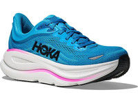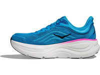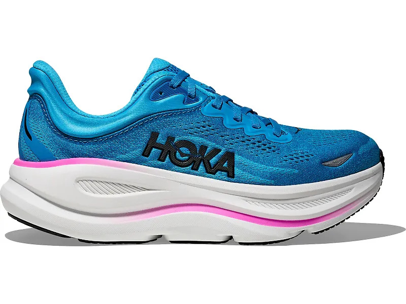 The HOKA Bondi 9 is designed to eat up the bulk of your everyday miles with peak plushness. With an extra 2 mm of soft yet responsive, super critical EVA foam and a rolling sensation that propels you forward with less effort, the Bondi 9 delivers the cushion and comfort you crave for long runs, long walks and long hours spent on your feet. So whether you’re taking your runs to new distances or simply seeking all-day comfort, the Bondi 9’s ultra-cushioned ride and snug, accommodating fit will turn the pavement into clouds. Details: - Upper: A knit upper paired with a retooled 3D molded heel collar offers a more accommodating fit. The extended heel pull makes slipping in and out of the shoe easy while reflective details increase visibility for extra safety during early morning or evening runs. - Midsole: This max-cushioned midsole features super critical EVA foam for a softer, more responsive ride. The smooth Meta-Rocker™ geometry is designed for effortless transitions while the rearfoot-focused Active Foot Frame™ cradles your heel for better stability and balance. Plus, an additional 2 mm of cushioning boosts comfort and support underfoot. - Outsole: A Durabrasion rubber outsole uses strategically placed zones to provide durability and reliable traction without weighing you down.