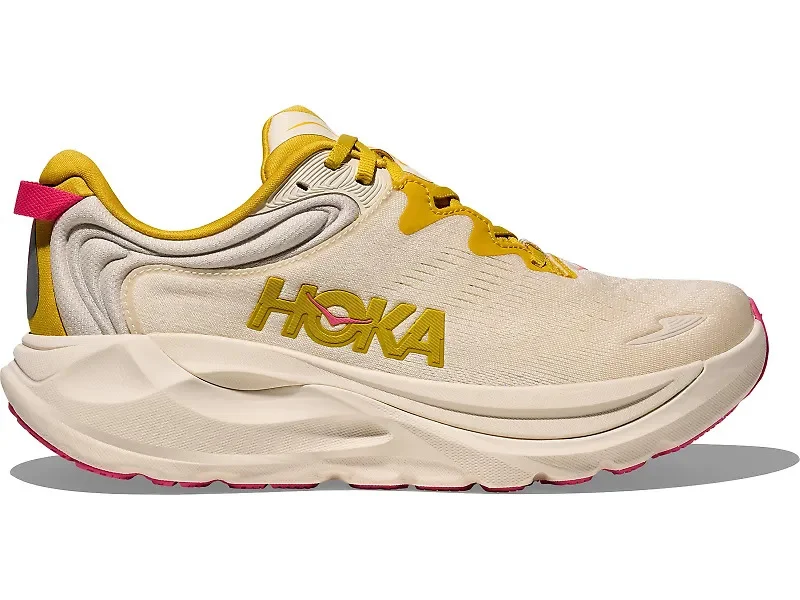 Keep your stride steady with the HOKA Gaviota 6. Built for runners who need reliable support without sacrificing comfort, this max-cushioned stability shoe brings enhanced H-Frame technology to help guide your gait smoothly from heel to toe. With a plusher collar, an elevated engineered mesh upper and a new internal ghillie lacing system, the Gaviota 6 proves that support can feel as good as it performs. Details: - Upper: Breathable engineered mesh keeps your feet comfortable while the internal ghillie lacing system creates a secure, customizable fit. The plusher comfort collar wraps your ankle softly, and the heel pull webbing makes getting in and out easier on busy mornings. Reflective details help keep you visible during early or late runs. - Midsole: Compression-molded EVA foam delivers the max cushioning you need for longer efforts while staying responsive enough for everyday training. The enhanced H-Frame stability technology uses an open "H" shape to provide smooth transitions and support on both the medial and lateral sides—helping you feel balanced and controlled through your entire stride. - Outsole: Abrasion-resistant rubber stands up to consistent training miles, giving you the durability and traction to keep showing up week after week.