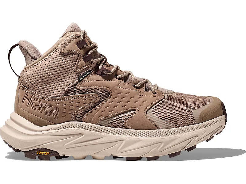 Leave more footprints on the ground and less on the environment with the HOKA Anacapa 2 Mid GTX. This hiking shoe has been designed with a focus on using more earth-conscious materials. The EVA midsole made of 30% sugar cane keeps you comfortable on the trail with a balanced, cushioned ride. Then, the extended HUBBLE® heel, SwallowTail™ geometry and late-stage Meta-Rocker help roll your feet through the trails for a smooth and comfortable journey to amazing views. Your feet will stay dry thanks to the PFC-free water repellency treatment, Gore-Tex® fabric with recycled content and Leather Working Group gold-rated waterproof nubuck leather. It is finished with metal speed hooks and a rubber toe cap to help keep your feet comfortable and protected. Plus, the sockliner is made from 50% soybean oil. Lastly, a Vibram® Megagrip outsole with 5 mm lugs inspires confidence on technical terrain. Have more fun in nature with one of the best trail shoes for hiking, the HOKA Anacapa 2 GTX Mid trail shoe.