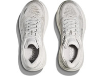 The HOKA Bondi 9 is designed to eat up the bulk of your everyday miles with peak plushness. With an extra 2 mm of soft yet responsive, super critical EVA foam and a rolling sensation that propels you forward with less effort, the Bondi 9 delivers the cushion and comfort you crave for long runs, long walks and long hours spent on your feet. So whether you’re taking your runs to new distances or simply seeking all-day comfort, the Bondi 9’s ultra-cushioned ride and snug, accommodating fit will turn the pavement into clouds. Details: - Upper: A knit upper paired with a retooled 3D molded heel collar offers a more accommodating fit. The extended heel pull makes slipping in and out of the shoe easy while reflective details increase visibility for extra safety during early morning or evening runs. - Midsole: This max-cushioned midsole features super critical EVA foam for a softer, more responsive ride. The smooth Meta-Rocker™ geometry is designed for effortless transitions while the rearfoot-focused Active Foot Frame™ cradles your heel for better stability and balance. Plus, an additional 2 mm of cushioning boosts comfort and support underfoot. - Outsole: A Durabrasion rubber outsole uses strategically placed zones to provide durability and reliable traction without weighing you down.