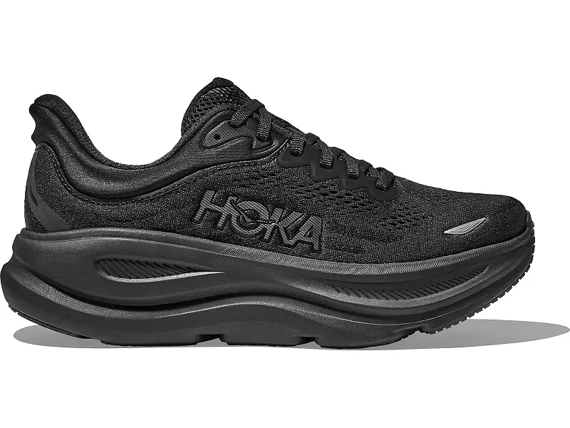 The HOKA Bondi 9 is designed to eat up the bulk of your everyday miles with peak plushness. With an extra 2 mm of soft yet responsive, super critical EVA foam and a rolling sensation that propels you forward with less effort, the Bondi 9 delivers the cushion and comfort you crave for long runs, long walks and long hours spent on your feet. So whether you’re taking your runs to new distances or simply seeking all-day comfort, the Bondi 9’s ultra-cushioned ride and snug, accommodating fit will turn the pavement into clouds. Details: - Upper: A knit upper paired with a retooled 3D molded heel collar offers a more accommodating fit. The extended heel pull makes slipping in and out of the shoe easy while reflective details increase visibility for extra safety during early morning or evening runs. - Midsole: This max-cushioned midsole features super critical EVA foam for a softer, more responsive ride. The smooth Meta-Rocker™ geometry is designed for effortless transitions while the rearfoot-focused Active Foot Frame™ cradles your heel for better stability and balance. Plus, an additional 2 mm of cushioning boosts comfort and support underfoot. - Outsole: A Durabrasion rubber outsole uses strategically placed zones to provide durability and reliable traction without weighing you down.