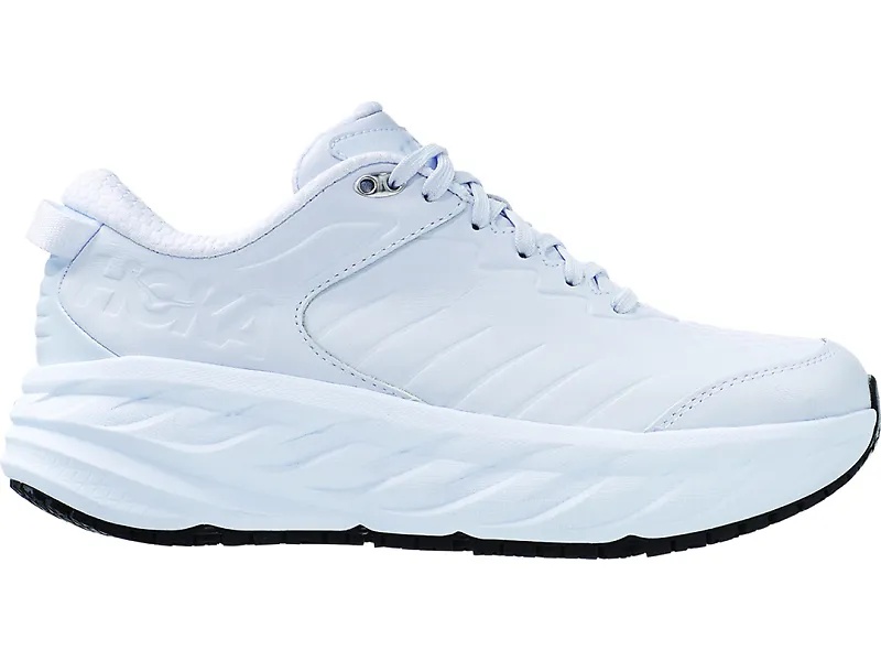The women's HOKA Bondi SR brings the super-plush cushioning of the classic Bondi to a shoe that’s fit for the workplace. HOKA built the Bondi SR with a water-resistant leather upper that’s comfortable and flexible. Plus, the clean look and single color choice makes the Bondi SR suitable for work. Underfoot, designers made two decisions that make the Bondi SR a stellar shoe for anyone who works all day on their feet: a huge cushion and slip-resistance. The Bondi is the most-cushioned shoe in HOKA’s lineup, so it will be comfortable for a full shift (or more), and the outsole is made with a slip-resistant rubber and tread design that’s tested on surfaces with water, oil and soap. With the leather upper, ultra-soft cushioning and non-marking outsole, the women's HOKA Bondi SR one of the best walking shoes for women, and perfect for anyone who works in a restaurant, a hospital or anywhere else that requires long shifts on your feet.