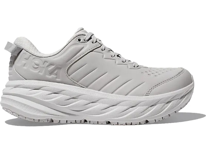 The men's HOKA Bondi SR brings the super-plush cushioning of the classic Bondi to a shoe that’s fit for the workplace. HOKA built the Bondi SR with a water-resistant leather upper that’s comfortable and flexible. Plus, the clean look and single color choice makes the Bondi SR suitable for work. Underfoot, designers made two decisions that make the Bondi SR a stellar shoe for anyone who works all day on their feet: a huge cushion and slip-resistance. The Bondi is the most-cushioned shoe in HOKA’s lineup, so it will be comfortable for a full shift (or more), and the outsole is made with a slip-resistant rubber and tread design that’s tested on surfaces with water, oil and soap. With the leather upper, ultra-soft cushioning and non-marking outsole, the men's HOKA Bondi SR is perfect for anyone who works in a restaurant, a hospital or anywhere else that requires long shifts on your feet.