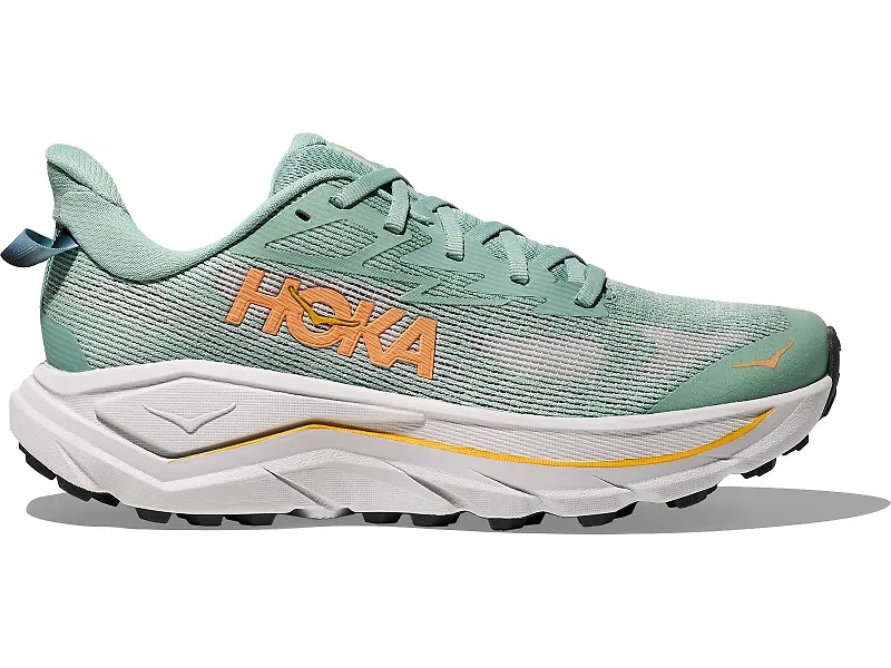 The HOKA Challenger 8 is made for where the road meets the trail. Designed for runners who refuse to be limited by terrain, the Challenger 8 bridges the gap between your neighborhood streets and your favorite trails with confidence-inspiring versatility. This gravel-grinding workhorse delivers HOKA's signature cushy ride with even more foam underfoot than before, while reimagined multi-directional lugs ensure you'll have the traction you need no matter where your run takes you. Whether you're exploring new paths or sticking to familiar routes, the Challenger 8 gives you the freedom to run anywhere your curiosity leads. Details: - Upper: 100% rPET engineered mesh gives you breathable comfort while doing good for the planet. The plush collar surrounds your ankle with soft support, and an extended heel pull tab makes slipping on and off easy after long days on your feet. - Midsole: Compression molded EVA foam delivers that signature HOKA cushioning you love, now with even more foam for an ultra-plush ride that absorbs impact whether you're on pavement or dirt. - Outsole: Durabrasion rubber adapts to any terrain, while strategically placed multi-directional 4 mm lugs provide ultimate traction. Plus, a durable 3D screen-printed toe cap protects against rocks and roots when the trail gets technical.