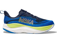 Take your everyday miles to the next level in the HOKA Skyflow. The Skyflow’s smooth geometry is inspired by the Skyward X and uses an upgraded foam compound to give you a springy ride that will keep you comfortable for miles. A supportive heel-focused Active Foot Frame cradles your foot while the early-stage MetaRocker gives you an effortless stride. Details: - Upper: The upper features a breathable creel jacquard mesh that gives you a secure yet comfortable fit that adapts to your foot. A dual-gusseted tongue and sleek collar construction ensures a great lockdown for every run. - Midsole: The cushy midsole boasts supercritical EVA foam for a plush, responsive ride that balances cushioning and energy return for daily miles. Plus, the forefoot rocker profile provides snappy transitions and enhanced ground contact for a smoother ride. - Outsole: Durable high-abrasion rubber is engineered for long-lasting traction and durability, even on high-mileage runs.
