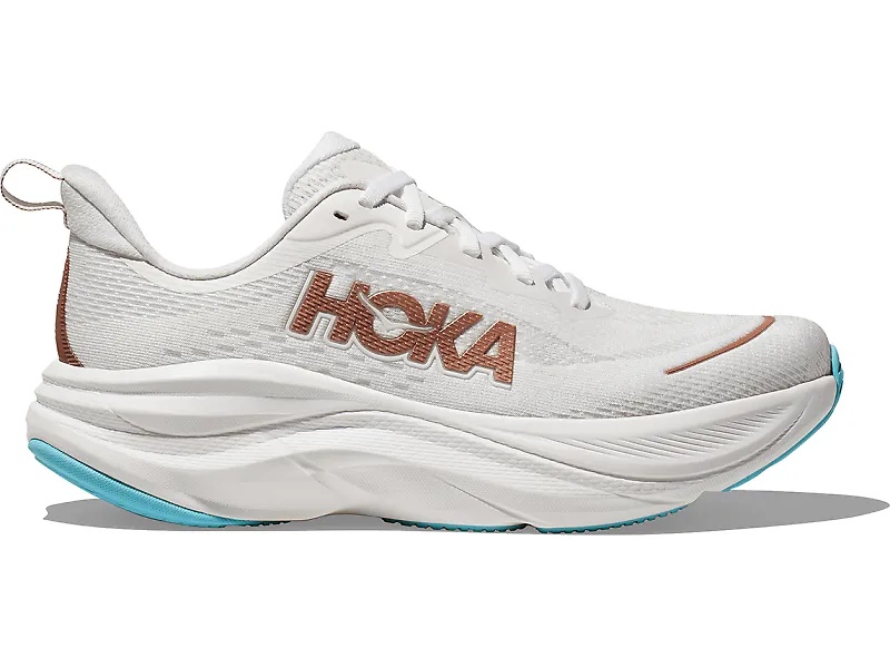 Take your everyday miles to the next level in the HOKA Skyflow. The Skyflow’s smooth geometry is inspired by the Skyward X and uses an upgraded foam compound to give you a springy ride that will keep you comfortable for miles. A supportive heel-focused Active Foot Frame cradles your foot while the early-stage MetaRocker gives you an effortless stride. Details: - Upper: The upper features a breathable creel jacquard mesh that gives you a secure yet comfortable fit that adapts to your foot. A dual-gusseted tongue and sleek collar construction ensures a great lockdown for every run. - Midsole: The cushy midsole boasts supercritical EVA foam for a plush, responsive ride that balances cushioning and energy return for daily miles. Plus, the forefoot rocker profile provides snappy transitions and enhanced ground contact for a smoother ride. - Outsole: Durable high-abrasion rubber is engineered for long-lasting traction and durability, even on high-mileage runs.