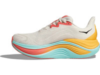 Miles feel effortless in the HOKA Skyward X. This supremely cushioned trainer takes soft and smooth to the extreme. It features HOKA's groundbreaking suspension system with a convex carbon fiber plate that compresses and springs back with every stride. A highly resilient PEBA foam sits closest to your foot for lively, cloud-like cushioning, while a super critical EVA frame provides a stable base below. In our full review of the HOKA Skyward X, run tester Mandy said, “I felt as if I was rolling through my runs and could run forever. This included both weekend long runs and shorter after-work runs. I liked running hillier sections in these shoes more than flatter sections because the combination of the carbon plate, cushioning and rocker shape allowed me to really let ‘er rip when going downhill.” Details: - Upper: A flat knit upper with zonal engineering molds to your foot for a sock-like fit. Perforated material increases breathability while plush padding on the tongue and heel collar gives you a premium feel. A tapered heel collar reduces chafing and irritation on your Achilles, and extra eyelets allow you to tie the marathon loop to lock down the fit. - Midsole: The Skyward X's midsole has three layers that work together to provide a comfortable and efficient ride. The first layer, closest to your foot, is made of PEBA foam, which gives a bit of cushioned bounce with each step. Beneath that is a curved carbon-fiber plate that compresses when your foot strikes the ground, storing energy to spring back and propel you forward as you push off. Finally, the bottom layer is an EVA foam that works with HOKA's signature rocker shape to create a smooth and effortless transition from heel to toe as you walk or run.