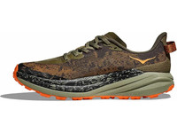 Blaze new trails and conquer gnarly terrain in the HOKA Speedgoat 6. The refined Speedgoat 6 builds on its legend with a responsive, lightweight CMEVA midsole that serves up a buttery smooth, high-rebounding ride to keep you feeling fresh over long efforts. But, what really sets the Speedgoat apart is its ultra-grippy Vibram® Megagrip outsole with aggressive Traction Lugs inspired by an actual goat's hoof. So whether you're chasing FKTs on technical singletrack or just getting after it on your local trails, the HOKA Speedgoat 6 delivers incredible grip and HOKA's cloud-like cushioning in an ultralight, ultra-capable trail shoe. Details: - Upper: A dynamic sandwich mesh upper keeps your feet cool and protected, while a gusseted tongue with plush padding helps you stay comfortable over the long haul. - Midsole: All-new, lightweight and resilient CMEVA foam gives you tried-and-true cushioning for all-day trail runs, while the late-stage meta-rocker shape helps roll you through your gait. - Outsole: The Vibram® Megagrip outsole with 5 mm Traction Lugs claws into loose dirt, mud and technical terrain so you can charge uphills and bomb downhills with confidence.