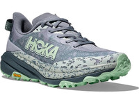 Blaze new trails and conquer gnarly terrain in the HOKA Speedgoat 6. The refined Speedgoat 6 builds on its legend with a responsive, lightweight CMEVA midsole that serves up a buttery smooth, high-rebounding ride to keep you feeling fresh over long efforts. But, what really sets the Speedgoat apart is its ultra-grippy Vibram® Megagrip outsole with aggressive Traction Lugs inspired by an actual goat's hoof. So whether you're chasing FKTs on technical singletrack or just getting after it on your local trails, the HOKA Speedgoat 6 delivers incredible grip and HOKA's cloud-like cushioning in an ultralight, ultra-capable trail shoe. Details: - Upper: A dynamic sandwich mesh upper keeps your feet cool and protected, while a gusseted tongue with plush padding helps you stay comfortable over the long haul. - Midsole: All-new, lightweight and resilient CMEVA foam gives you tried-and-true cushioning for all-day trail runs, while the late-stage meta-rocker shape helps roll you through your gait. - Outsole: The Vibram® Megagrip outsole with 5 mm Traction Lugs claws into loose dirt, mud and technical terrain so you can charge uphills and bomb downhills with confidence.