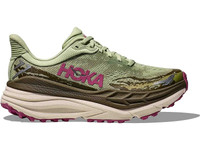 If you can only pack one pair of shoes for your next adventure, make sure it’s the HOKA Stinson ATR 7. Whether you’re out all day or going all out, this max-cushioned road-to-trail shoe will be your Swiss army knife for running, hiking, walking and everything in between. The Stinson’s all-terrain versatility starts with its thoughtfully designed outsole that uses 4 mm multi-directional lugs made of grippy Durabrasion rubber for smooth and confident traction on any surface. Then, a tall stack of plush and lightweight CMEVA foam and HOKA’s H-Frame midsole technology gives you a soft and stable platform for endless miles of comfort and shock absorption from pavement to trail to gravel. Secure support and a locked-down fit come from the breathable jacquard mesh upper and gusseted tongue that hug your feet and prevent slippage while you’re navigating technical terrain. Plus, parts of the upper, including the laces are made from recycled content. Lastly, a rubber toe cap gives you the extra protection you need to adventure off-grid. From street to summit, get excited to run on clouds in the women's HOKA Stinson ATR 7.