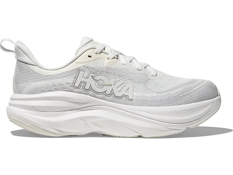 Take your everyday miles to the next level in the HOKA Skyflow. The Skyflow’s smooth geometry is inspired by the Skyward X and uses an upgraded foam compound to give you a springy ride that will keep you comfortable for miles. A supportive heel-focused Active Foot Frame cradles your foot while the early-stage MetaRocker gives you an effortless stride. Details: - Upper: The upper features a breathable creel jacquard mesh that gives you a secure yet comfortable fit that adapts to your foot. A dual-gusseted tongue and sleek collar construction ensures a great lockdown for every run. - Midsole: The cushy midsole boasts supercritical EVA foam for a plush, responsive ride that balances cushioning and energy return for daily miles. Plus, the forefoot rocker profile provides snappy transitions and enhanced ground contact for a smoother ride. - Outsole: Durable high-abrasion rubber is engineered for long-lasting traction and durability, even on high-mileage runs.