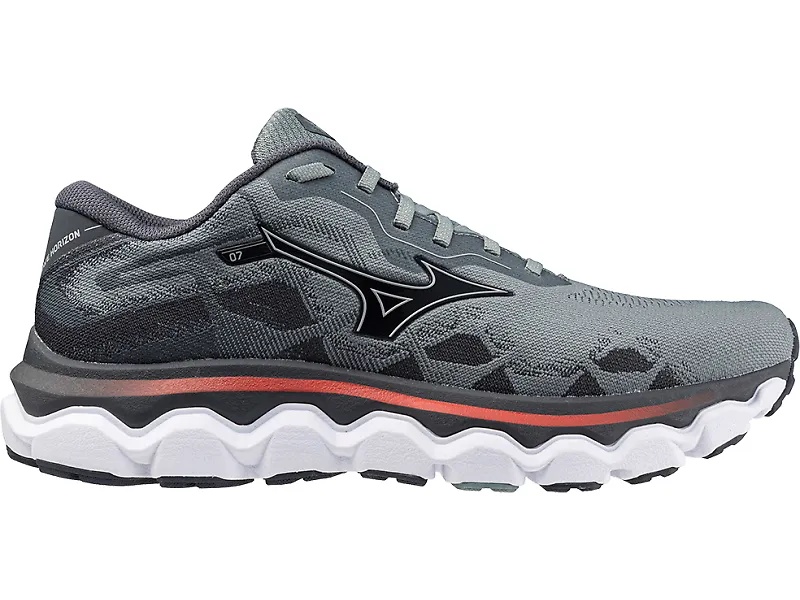 You’ll feel like you’re floating over the pavement in the Mizuno Wave Horizon 7. Whether you're out for an easy jog around the block or pushing through those long tempo runs, the Wave Horizon 7 brings a combo of comfort and excitement to your run. An additional 2 mm of Mizuno ENERZY Foam gives you an easy ride on the road, while the asymmetrical foam wave and rubber wall keep your stride smooth and stable. Details: - Upper: A smooth stretch woven upper adapts to your foot for all day comfort. Plus, the stretchy gusseted tongue hugs your midfoot for a secure fit on the run. - Midsole: A dual-density midsole with ENERZY and ENERZY CORE foam forms the signature Mizuno Wave. This combination creates a soft and highly stable shoe that establishes a floating feeling with a kick of energy return. - Outsole: The X10 carbon rubber outsole is durable and grippy for longer wear and better traction.