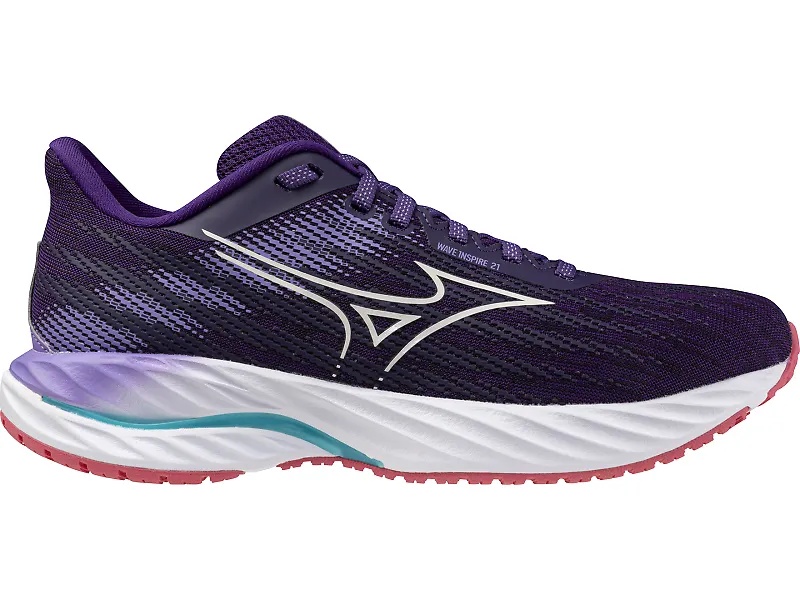 Stability meets comfort in the Mizuno Wave Inspire 21. Delivering soft landings, reliable support and energy return with every stride, this trusted stability running shoe features advanced MIZUNO ENERZY NXT cushioning and a MIZUNO WAVE® plate. A connected forefoot outsole design ensures fluid transitions from heel-to-toe, making every run feel natural and smooth. Whether you're logging daily miles or training for your next race, the Mizuno Wave Inspire 21 gives you the perfect blend of stability and cushioning to keep you moving forward. Details: - Upper: A breathable jacquard mesh upper with a gusseted tongue creates a secure, comfortable fit while incorporating eco-friendly recycled materials - Midsole: Dual-layer cushioning combines MIZUNO ENERZY NXT and MIZUNO ENERZY foam for optimal energy return and softness, while the anatomically-designed MIZUNO WAVE® plate spreads impact forces across the shoe, improving stability and cushioning - Outsole: Durable X10 carbon rubber with a connected forefoot outsole design delivers smooth transitions and reliable traction