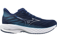 The Mizuno Wave Rider 28 brings dynamic smoothness to your everyday runs. Soft cushioning and high energy return come from Mizuno’s game-changing ENERZY NXT midsole and legendary Wave Plate in the heel, which are stable and forgiving on easy runs while still being versatile for faster transitions when you pick up the pace. Finished off with a breathable Jacquard Air Mesh upper for a seamless fit, the Wave Rider 28 is ready to be your ultimate daily trainer. Details: - Upper: A soft Jacquard mesh upper gives you a forgiving and breathable fit. This flexible and smooth upper construction, with strategically placed PU print guides, stretches and supports your foot with every stride. - Midsole: Lighter, softer and more resilient than ever, the bio-based ENERZY NXT midsole ensures a smooth and energized ride from your first step to your last. In the heel, a Pebax Rnew® Wave Plate provides a cushioned, stable ride that minimizes environmental impact while maximizing your performance. - Outsole: The X10 outsole is a carbon rubber that makes the Wave Rider durable enough to be your workhorse running shoe.