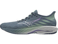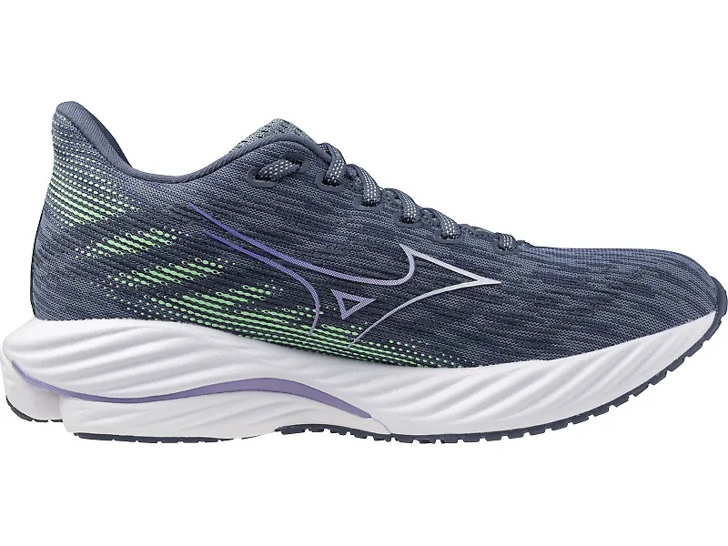 The Mizuno Wave Rider 28 brings dynamic smoothness to your everyday runs. Soft cushioning and high energy return come from Mizuno’s game-changing ENERZY NXT midsole and legendary Wave Plate in the heel, which are stable and forgiving on easy runs while still being versatile for faster transitions when you pick up the pace. Finished off with a breathable Jacquard Air Mesh upper for a seamless fit, the Wave Rider 28 is ready to be your ultimate daily trainer. Details: - Upper: A soft Jacquard mesh upper gives you a forgiving and breathable fit. This flexible and smooth upper construction, with strategically placed PU print guides, stretches and supports your foot with every stride. - Midsole: Lighter, softer and more resilient than ever, the bio-based ENERZY NXT midsole ensures a smooth and energized ride from your first step to your last. In the heel, a Pebax Rnew® Wave Plate provides a cushioned, stable ride that minimizes environmental impact while maximizing your performance. - Outsole: The X10 outsole is a carbon rubber that makes the Wave Rider durable enough to be your workhorse running shoe.