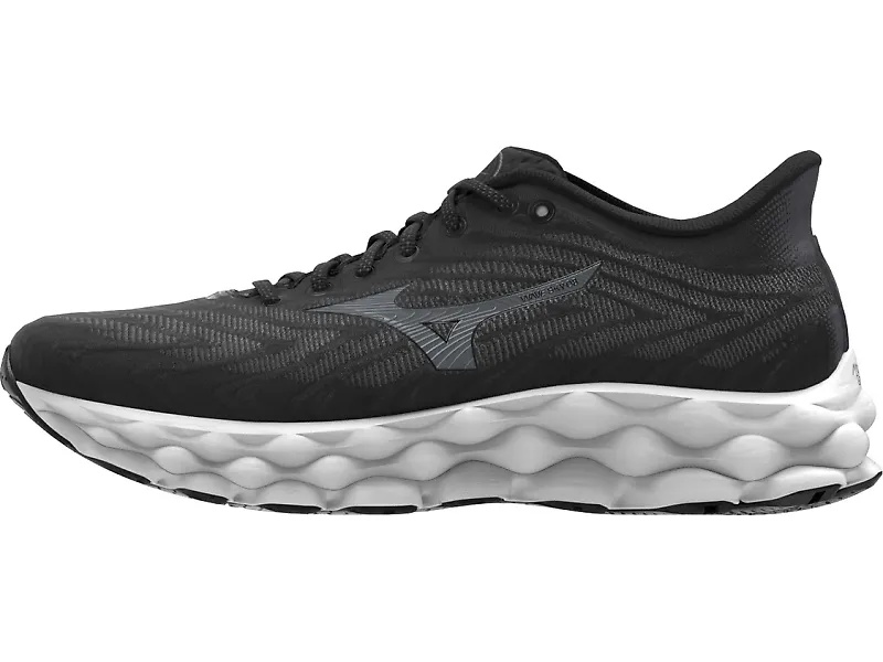 Experience the ultimate floating feeling in the Mizuno Wave Sky 8. This high-cushioned daily trainer is pure bliss. From its soft and responsive ENERZY NXT midsole to the plush and breathable upper that wraps your foot for a secure fit, the Wave Sky 8 is the ultimate running shoe for maximum cushioning and all-day comfort. Details: - Upper: When you first step into the Wave Sky 8, the smooth, stretch-woven upper and gusseted tongue wrap your foot like a glove for an adaptive fit that’s soft yet supportive. - Midsole: Comfort is key thanks to the innovative MIZUNO ENERZY NXT midsole and FOAM WAVE design that layers a softer foam on top of more rigid foam for soft landings and stable toe-offs. - Outsole: A durable X10 carbon rubber outsole holds up to long miles and gives you the traction to run fast and take corners with speed.