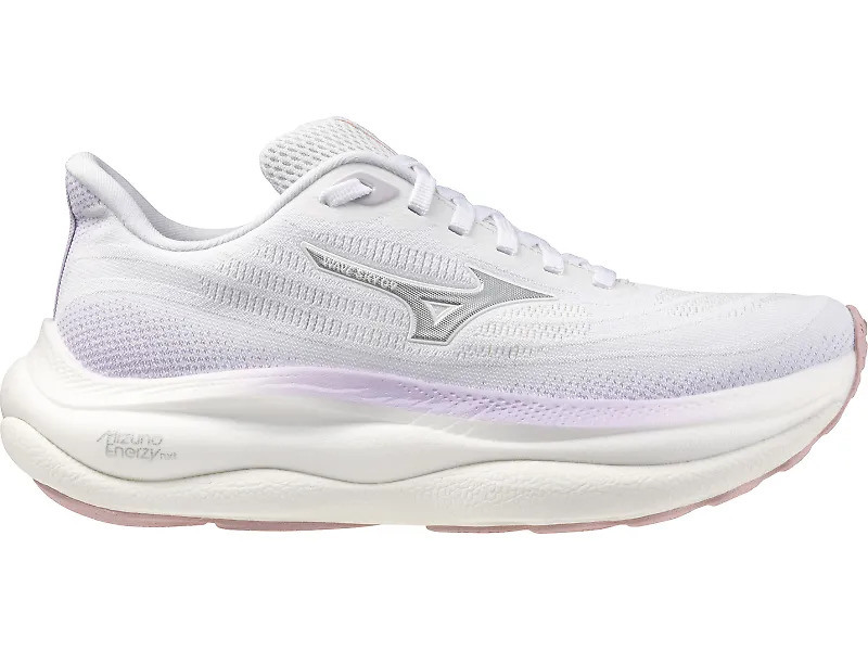 Find out what it feels like to float through your runs in the Mizuno Wave Sky 9. Crafted for runners who crave that pillowy, cloud-like sensation beneath their feet, this shoe transforms every mile into an almost weightless experience. With enhanced NITROGEN INFUSED MIZUNO ENERZY NXT cushioning and innovative FOAM WAVE technology, the Wave Sky 9 brings maximum comfort and reliable stability to your daily runs. Details: - Upper: The Smooth Stretch Woven construction wraps your foot with breathable comfort while controlling stretch direction for optimal running. The gusseted tongue hugs your foot securely without any pressure points, creating that perfect locked-in feel that lets you focus on your run. - Midsole: The next-generation MIZUNO ENERZY NXT material is nitrogen-infused to deliver incredible energy return and cushioning that maximizes your performance. The innovative FOAM WAVE combines two layers: U4icX on top and Mizuno Enerzy below to give you a wave of comfort that enhances stability without sacrificing that pillowy softness. - Outsole: The durable X10 carbon rubber construction ensures this shoe will be your trusted training partner for hundreds of miles, giving you the longevity to stick with your goals and see real progress over time.