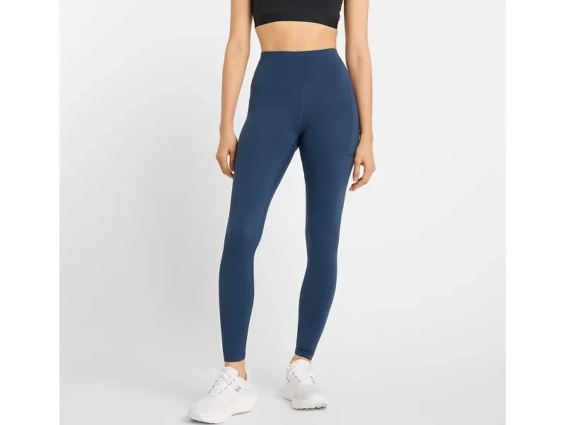 Whether you are doing a HIIT workout or running your heart out, the New Balance High Rise Leggings 27” will keep up with you and take your workout to the next level. A high-rise waistband keeps the leggings in place, and the premium materials ensure you stay dry. Plus, multiple pockets give you storage options to carry everything you need while working out. Details - NB DRYx premium, fast-drying technology wicks moisture away from your body to help you dominate your workout - Fold-up cuff at ankle to reveal reflective taping for versatile 360-degree reflectivity - NB Sleek is built with 4-way stretch fabric designed to fit your shape for freedom of movement during high-intensity workouts and runs - High-stretch internal infinity drawcord - Internal pocket on waistband - Side pockets - High-rise waistband