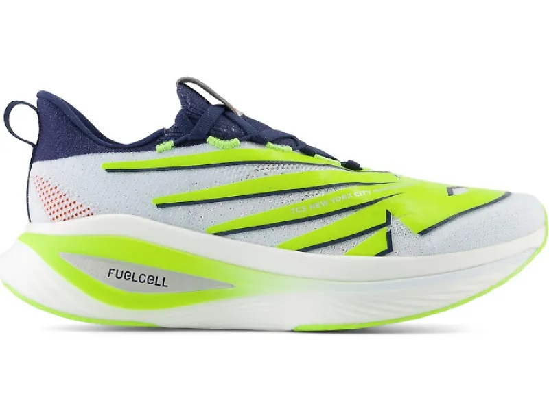 Get ready to hear “New York, New York” as you cross the start line in the New Balance 2023 NYC Marathon FuelCell SC Elite v3. Get to the finish line faster—these shoes were built for marathon runners who never give up. Two layers of springy FuelCell midsole foam are combined with a snappy carbon fiber plate to propel you forward. This year, the FuelCell SC Elite v3 is updated with New Balance’s Energy Arc, which pairs the sports-specific carbon fiber plate geometry with strategic midsole voids that increase stored energy to deliver a higher amount of energy returned. For a no-fuss fit that’s ready for race day, a bootie upper hugs and supports your feet while a one-piece integrated tongue with the TCS New York City Marathon® logo on it is breathable and secure. Plus, a new lacing loop system lets you dial in your perfect fit. Fly through all five boroughs in the New Balance 2023 NYC Marathon FuelCell SC Elite v3. Check out our collection of New York City running gear for the latest limited edition apparel, shoes and gear celebrating the Big Apple.