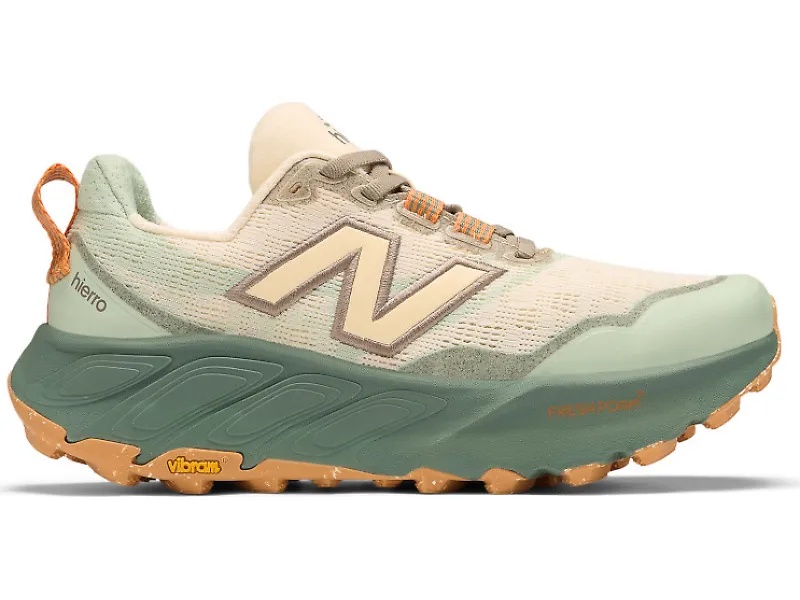 Tackle the trails with the New Balance Fresh Foam X Hierro v9. Sporting a Vibram® outsole, grippy lugs and durable materials, the Hierro v9 is built to take on any terrain. Dual-density cushioning combines plush comfort with a more stable underfoot feel that makes every adventure more enjoyable. Details: - Upper: A breathable knit mesh with printed overlays and gusseted tongue keeps debris out while allowing airflow. Toe Protect technology shields your feet from rocks and roots. - Midsole: Dual-density Fresh Foam X cushioning gives you plush comfort without sacrificing stability, absorbing impact while maintaining ground feel for uneven terrain. - Outsole: Vibram® Megagrip with redesigned 6 mm lugs delivers superior traction on wet, dry and technical terrain.