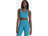 A comfortable sports bra with medium support for a secure fit and feel during workouts and everyday activities. Details: NB DRYx premium, fast-drying technology wicks moisture away from your body to help you dominate your workout - Removable cups for support and coverage - Back phone pocket constructed from breathable mesh material - Supportive bottom elastic band - NB Sleek is built with 4-way stretch fabric designed to fit your shape, for freedom of movement during high-intensity workouts and runs - 71% recycled polyester, 29% spandex