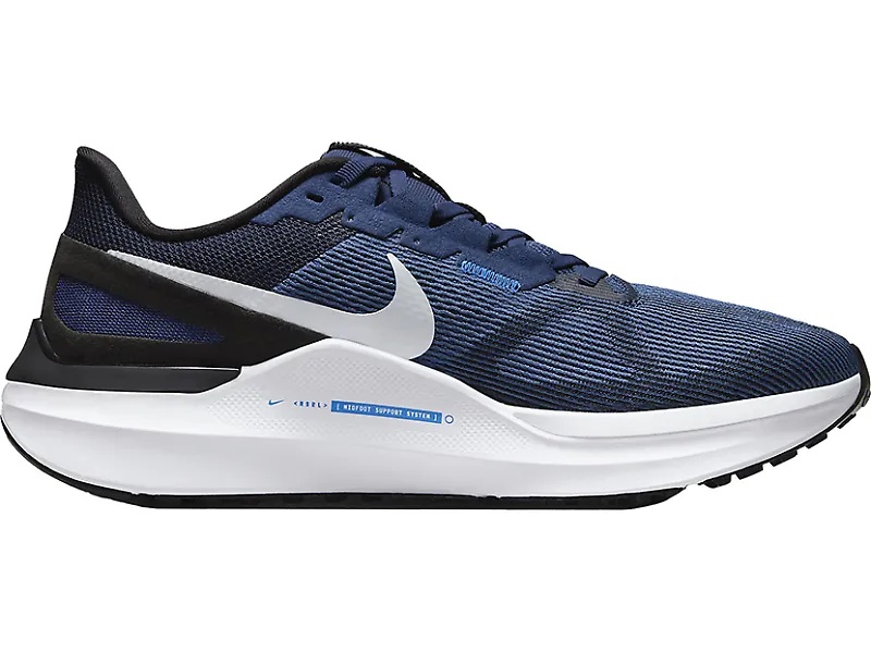 A fan-favorite returns with the men's Nike Air Zoom Structure 25. The most stable Nike running shoe in their lineup comes with a high stack of strategically placed cushioning to support you through long miles, easy training runs and long days spent on your feet. A snug midfoot and accommodating toe box keep your foot secure and give you plenty of room to wiggle your toes, while the durable rubber outsole puts this tried and trusted stability running shoe firmly into the reliable daily trainer category. Features: - Upper: The upper is a single layer of mesh for better breathability. An accommodating toe box works with a midfoot system and structured heel collar to give you a more supportive fit. Soft materials on the inside of the heel, collar and tongue keep blisters away. - Midsole: The high-cushioned midsole gives you a soft and comfortable feel as you log your daily miles. A rocker shape gives this shoe a smooth ride while a Zoom Air unit in the forefoot adds some responsiveness when you toe off. - Outsole: Durable rubber outsole has grooves in the forefoot to create flexibility, and vertical grooves down the side for extra stability.