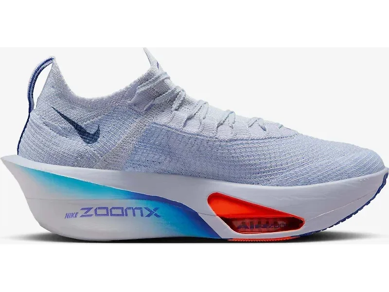 The Alphafly 3 propels you forward into the next level of marathon speed. Nike packed three innovative technologies into the latest Alphafly: - A pair of Air Zoom units to launch you forward - A full-length carbon-fiber plate for a more propulsive ride - A heel-to-toe ZoomX midsole to make every step feel fresh With its cutting-edge tech and bold style, the Alphafly 3 makes your runs more powerful and lighter than ever before. Details: - Upper: The Atomknit upper offers containment and breathability that provides a comfortable fit. - Midsole: A full-length carbon fiber plate helps push you forward effortlessly, while heel-to-toe ZoomX foam keeps you feeling fresh from start to finish. - Outsole: Its electric outsole gives you better durability and traction on any run.