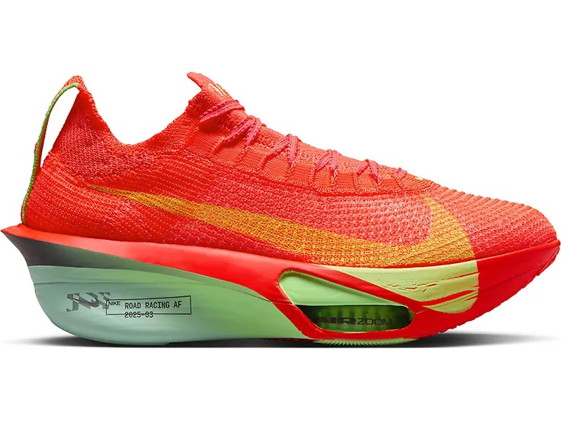 The Alphafly 3 propels you forward into the next level of marathon speed. Nike packed three innovative technologies into the latest Alphafly: - A pair of Ait Zoom units to launch you forward - A full-length carbon-fiber plate for a more propulsive ride - A heel-to-toe ZoomX midsole to make every step feel fresh With its cutting-edge tech and bold style, the Alphafly 3 makes your runs more powerful and lighter than ever before. Details: - Upper: The Atomknit upper offers containment and breathability that provides a comfortable fit. - Midsole: A full-length carbon fiber plate helps push you forward effortlessly, while heel-to-toe ZoomX foam keeps you feeling fresh from start to finish. - Outsole: Its electric outsole gives you better durability and traction on any run.