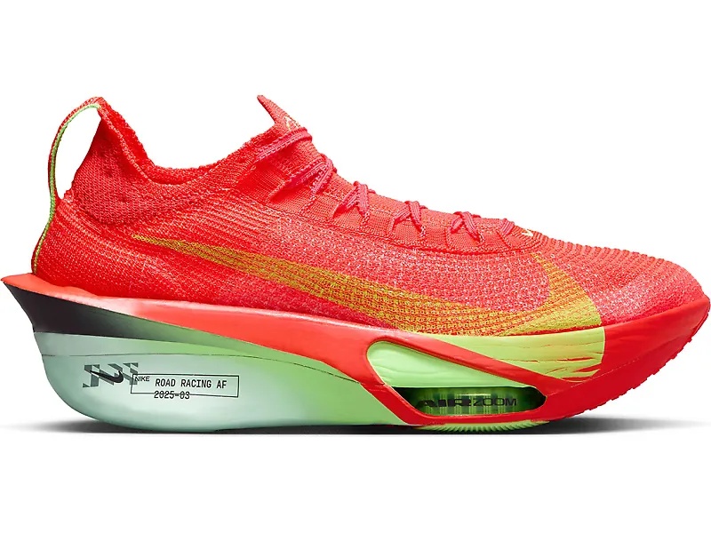 The Alphafly 3 propels you forward into the next level of marathon speed. Nike packed three innovative technologies into the latest Alphafly: - A pair of Air Zoom units to launch you forward - A full-length carbon-fiber plate for a more propulsive ride - A heel-to-toe ZoomX midsole to make every step feel fresh With its cutting-edge tech and bold style, the Alphafly 3 makes your runs more powerful and lighter than ever before. Details: - Upper: The Atomknit upper offers containment and breathability that provides a comfortable fit. - Midsole: A full-length carbon fiber plate helps push you forward effortlessly, while heel-to-toe ZoomX foam keeps you feeling fresh from start to finish. - Outsole: Its electric outsole gives you better durability and traction on any run.