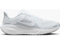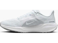 You’ll feel like you're flying in the Nike Pegasus 41. The Pegasus 41 combines responsive cushioning and versatility for your everyday training. It offers a plush, elevated feel with each step, whether you're running at high-speed or covering long distances. Its supportive and reliable design keeps you comfortable throughout your run. Features: - Upper: A plush collar, tongue and sock liner feels secure and comfortable during your runs, while the improved mesh upper enhances breathability and reduces weight. - Midsole: Enjoy the combination of Air Zoom units and a ReactX foam midsole, which surrounds your heel and forefoot to give you a lighter, energized feel. The ReactX foam is 13% more responsive than previous versions, making your runs even better. - Outsole: Waffle-inspired rubber outsole for a traction and flexibility