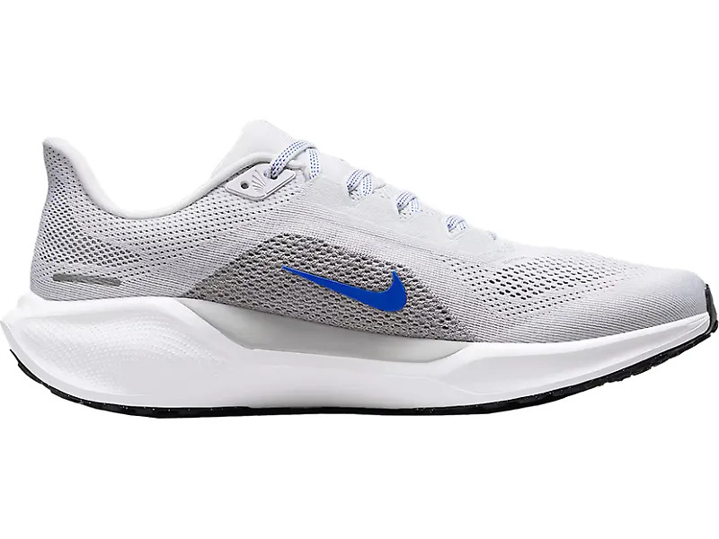 You’ll feel like you're flying in the Nike Pegasus 41. The Pegasus 41 combines responsive cushioning and versatility for your everyday training. It offers a plush, elevated feel with each step, whether you're running at high-speed or covering long distances. Its supportive and reliable design keeps you comfortable throughout your run. Features: - Upper: A plush collar, tongue and sock liner feels secure and comfortable during your runs, while the improved mesh upper enhances breathability and reduces weight. - Midsole: Enjoy the combination of Air Zoom units and a ReactX foam midsole, which surrounds your heel and forefoot to give you a lighter, energized feel. The ReactX foam is 13% more responsive than previous versions, making your runs even better. - Outsole: Waffle-inspired rubber outsole for a traction and flexibility