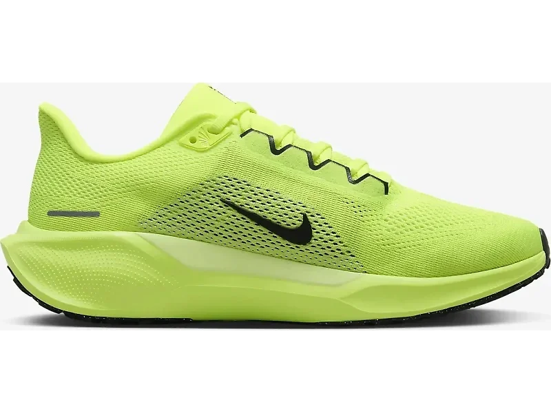You’ll feel like you're flying in the Nike Pegasus 41. The Pegasus 41 combines responsive cushioning and versatility for your everyday training. It offers a plush, elevated feel with each step, whether you're running at high-speed or covering long distances. Its supportive and reliable design keeps you comfortable throughout your run. Features: - Upper: A plush collar, tongue and sock liner feels secure and comfortable during your runs, while the improved mesh upper enhances breathability and reduces weight. - Midsole: Enjoy the combination of Air Zoom units and a ReactX foam midsole, which surrounds your heel and forefoot to give you a lighter, energized feel. The ReactX foam is 13% more responsive than previous versions, making your runs even better. - Outsole: Waffle-inspired rubber outsole for a traction and flexibility