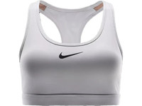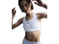 You're on the move. Your padding shouldn't be. The Nike Swoosh Medium Support Bra's sewn-in pads stay in place so you can work hard without worrying about them shifting or folding. Great for training workouts and dance classes, medium support gives you a snug hold that helps keep everything in place. Plus, sweat-wicking, adaptive material quickly recovers its shape so you can stay comfortable throughout your workout. When you're going hard, the bra's lightweight, adaptive fabric feels like a second skin for superior comfort and support. When it's time to rest, it recovers quickly and provides a snug hold and subtle shaping. Super-stretchy fibers make for an easy on/off experience so that you don't have to bend over backward to get out of your bra. Nike Dri-FIT technology moves sweat away from your skin for quicker evaporation, helping you stay dry and comfortable. It combines with a mesh lining to help keep you cool. The Swoosh sports bra has long been a partner to your workouts and beyond, but not everyone has the same needs. Looking for minimal coverage and a gentle hold? The Swoosh Light Support is the bra for you.