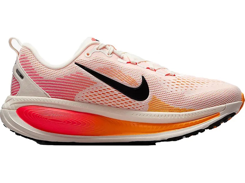 The sustainably-made Nike Vomero 18 will take your everyday road runs to a whole new level. Nike layered two types of foam—ZoomX and ReactX—to create the latest iteration of their essential comfort shoe. The Vomero 18 has a 46 mm stack height in the heel and a 36 mm stack height in the forefoot, making it the tallest midsole in the Vomero series. With that maximum cushion underfoot, this shoe promotes more efficient long runs, thanks to a high energy return. The Nike Vomero 18 gives the support you need to go the extra mile(s). Details - Upper: A mesh upper keeps the shoe breathable, while the plush tongue and collar enhance the all-around comfort. - Midsole: Soft ZoomX foam stacks on top of ReactX foam in the most cushioned Vomero shoe yet. This unique midsole creates a high energy return for maximum comfort on road runs. - Outsole: High abrasion rubber on the sole promotes premium durability and great traction on pavement. This redesigned traction pattern, along with the shoe’s upward curve, encourages a seamless heel-to-toe transition with every stride.