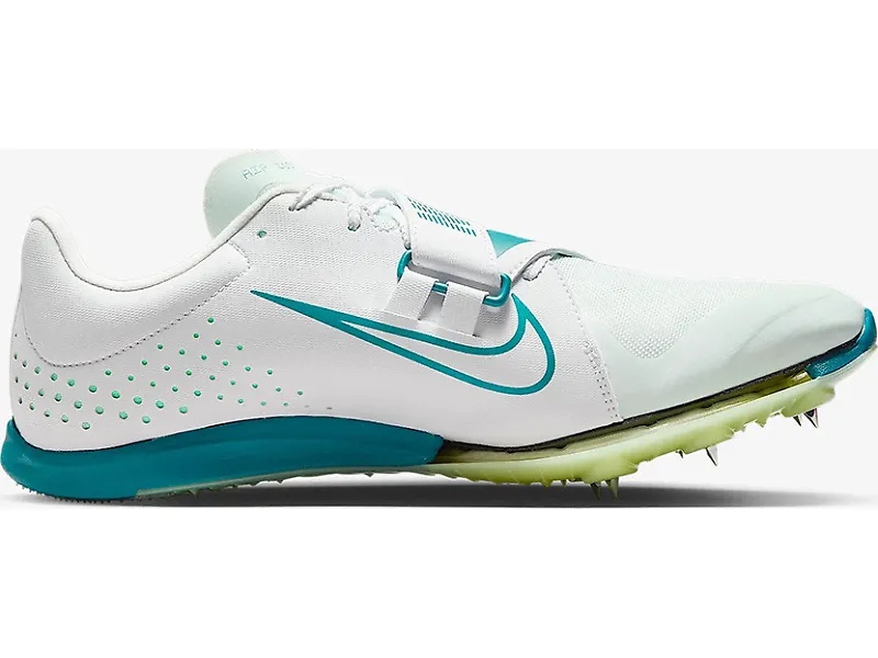The Nike Long Jump Elite is an ultra lightweight performance spike that will help you fly to your personal best. More bounce with the midsole air pocket and more stability with the full length carbon plate help you reach top speed before lift off. This spike is designed to be very secure, meeting the needs of the powerful movements of every long jumper. The midsole construction provides integrity and durability, and the X-cross strap keeps your foot locked in place so you can reach new heights. Details - Upper: The highlight of this upper is the X-cross strap, offering fantastic containment with powerful movements. The strap is designed to be easy-on-easy-off so you can adjust the fit between jumps. Woven fabric at the forefoot promotes breathability but keeps sand out. The perforations around the heel area reduce weight and increase ventilation. - Midsole: This long jump spike features a full length carbon plate for a propulsive and stable feel as your foot takes off. The exposed air pocket under the forefoot delivers an extra pop with every jump. The thick, molded foam at the heel adds cushioning designed for the specific needs of long jumpers. - Outsole: Seven detachable spikes on top of a shockwave grippy plastic make up the forefoot and midfoot of the outsole. On the heel, a sharkskin-inspired pattern provides a strong grip on a forceful foot strike.