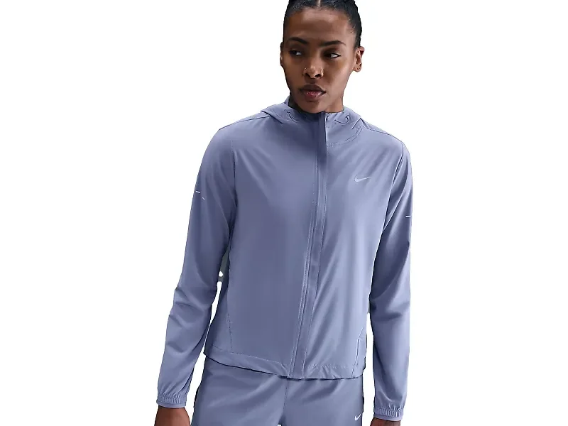 The Nike Swift Repel Packable Running Jacket was built by runners, for runners. Using insights from real runners, this jacket was designed to give you lightweight protection and distraction-free movement. Raglan sleeves help minimize underarm chafing and increase your range of motion, while adjustable hems and hood let you fine-tune the fit. Sweat-wicking fabric, a breathable back vent and a water-repellent finish work together to keep you dry and comfortable in any conditions. Details: - Reflective detailing - Raglan sleeves - Sweat-wicking - Water-repellant - Two zippered pockets - Jacket can be folded into a pocket