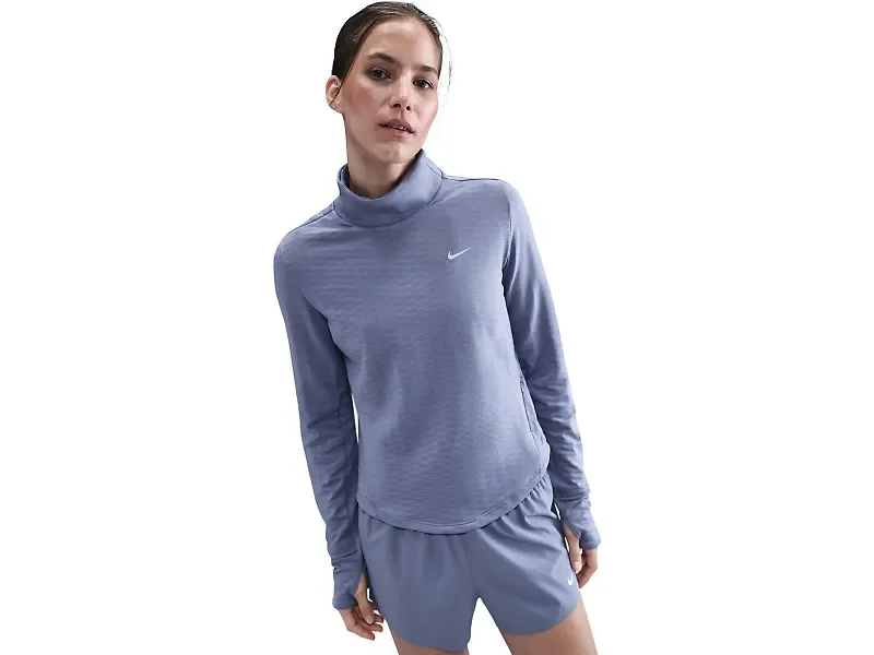 Don’t let the cold slow your stride with the Nike Swift Thermal-Fit Turtle-Neck Top. Made from soft, temperature-regulating Therma-FIT fabric, this top keeps you warm and comfortable as the temperature drops. Thoughtful details like wrist openings for easy watch checks, thumbholes for extra coverage and a secure zip pocket for essentials make this top a cool-weather essential. Details: - Watch opening - Thumbholes - Zip pockets - Reflective detailing - Therma-FIT technology