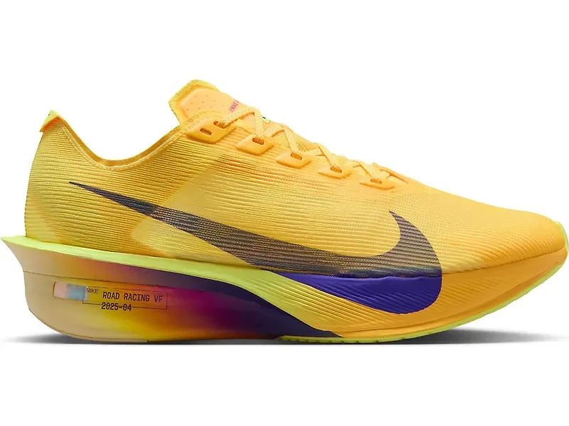 Get ready to fly past the competition in the Nike Vaporfly 4. These race-day rockets have been meticulously refined to create Nike's most efficient speed machine yet. From the mile to the marathon, you'll experience unprecedented lightness and responsiveness with every stride. By trimming weight throughout while maintaining the technology that matters most, the Vaporfly 4 delivers the perfect balance of featherweight construction and powerful propulsion that racers will love. Details: - Upper: The redesigned engineered mesh upper significantly reduces weight while providing a more consistent, secure fit throughout your race. A streamlined heel counter and minimalist tongue shed unnecessary grams without compromising comfort, keeping you focused solely on your performance when it counts most. - Midsole: The full-length carbon fiber Flyplate features a higher angle than its predecessor, working with the reduced 6 mm drop to create an incredibly propulsive feel. The lighter ZoomX foam runs from heel to toe, unlocking even more energy return with each stride, while the specially designed heel bulge enhances stability when you're pushing your limits. - Outsole: Thin rubber strategically placed on the outsole further reduces weight without sacrificing the durability or traction you need for race day performance.
