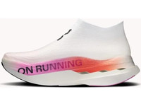 Outfitter's Note: this is a UNISEX-sized shoe. Men's sizes are shown — women should order 1.5 sizes below their standard running shoe size. For example: for a women's size 9.5 shoe, order a size 8. Get ready for serious pace in the ultrafast On Cloudboom Strike LS. This futuristic race day shoe delivers On’s lightest, most advanced technology to help you chase finish lines and new PRs. Built with revolutionary LightSpray technology, dual-layer Helion HF foam and a stiff carbon fiber Speedboard®, the Cloudboom Strike LS gives you powerful propulsion at every stride. Details: - Upper: The seamless LightSpray construction creates a second-skin fit using a single 1.5 km filament spun by a robot — think of it like 3D printing with thread. At just 30 g, it's On's lightest upper ever, and the laceless design means zero distractions when you're in the zone. Plus, it emits 75% less CO2 than traditional uppers. - Midsole: Two layers of over 40% bio-based Helion HF hyperfoam deliver high-speed energy return and impact protection. The pre-shaped carbon fiber Speedboard sits between the layers, transferring every bit of your effort into forward momentum. - Outsole: CloudTec elements create faster, smoother transitions, while maximized ground contact gives you the traction to trust your footing when every second counts.