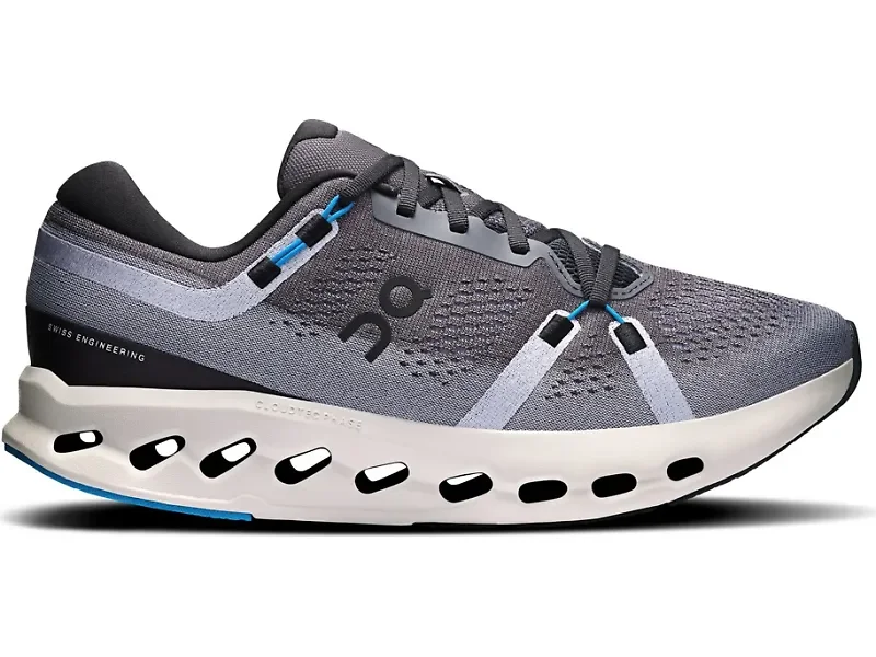 The On Cloudsurfer 2 delivers a smooth, natural ride without the extra frills. With balanced CloudTec Phase cushioning and plenty of stack height to go the distance, this daily trainer disappears on foot so you can get lost in the joy of running. The sustainably engineered mesh upper gives you a streamlined fit while the subtle rocker shape lets you glide along with each stride. Details: - Upper: The recycled mesh upper has a plush heel collar and tongue for all-day comfort. The fit feels nice and secure through the midfoot and has just the right amount of space in the toe box. - Midsole: CloudTec Phase cushioning gives you a firm, responsive ride while the smooth rocker shape helps roll you through your run. - Outsole: The enhanced rubber on the outsole pattern improves wet-weather traction and durability.
