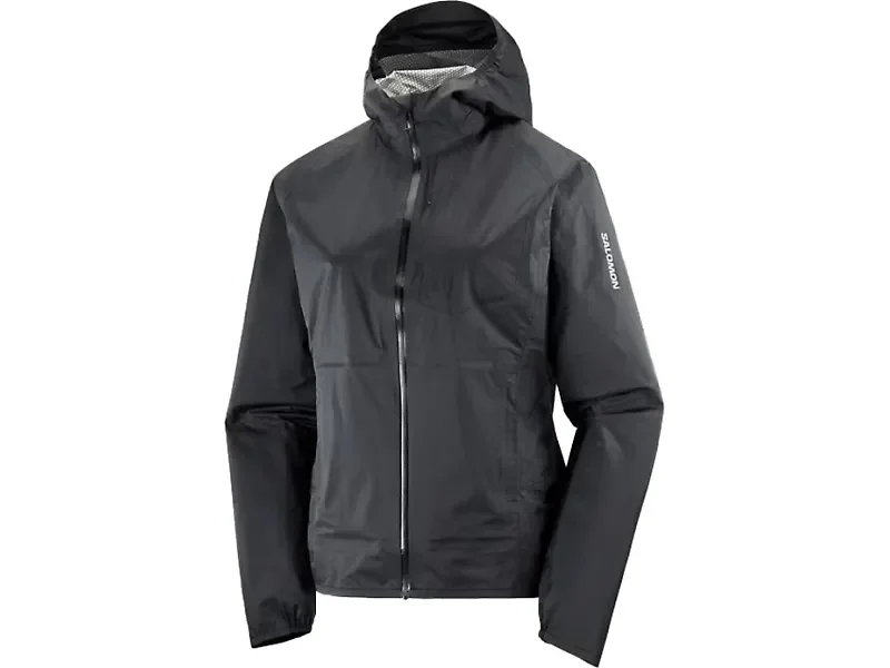 Showers—so what? Gusts of wind—so much the better. The Salomon Bonatti Waterproof Jacket isn’t put off by the weather. Ultra-light with a breathable micro-porous waterproof membrane, it'll keep you comfy and dry all year long, come road or trail. Details: - AdvancedSkin Dry Technology keeps you dry and protected from the elements, while its breathable membrane ensures optimal comfort by letting moisture escape. - AdvancedSkin Dry 10K/10K: Stay dry and comfortable in any weather with 10K waterproofing and breathability. Perfect protection against rain, snow, and wind. - Mechanical stretch - Ripstop fabric that has a specific construction for enhanced durability and long-lasting performance, ensuring resistance to tears and wear in demanding conditions. - Fixed hood: The hood is securely attached to the garment for a seamless, comfortable fit. - Smart hood: Minimalist construction hood that fits without draw cords or pullers. - Smart vent: A little press button on the front of your jacket allows to keep your jacket in place while the vents are open. - Waterproof zip: Designed to keep you dry, waterproof zippers provide a fully sealed closure, preventing water from seeping through, even in the heaviest rain - Zippered chest pocket: A practical, zipped closure to keep your must-haves secure and always within reach. - Stow pocket: Keep your essentials secure and close at hand with this discreet, conveniently placed pocket. - Reflective details: Stay visible in low-light conditions with reflective details—so you can move with confidence day or night. - DWR Treatment - PFC Free