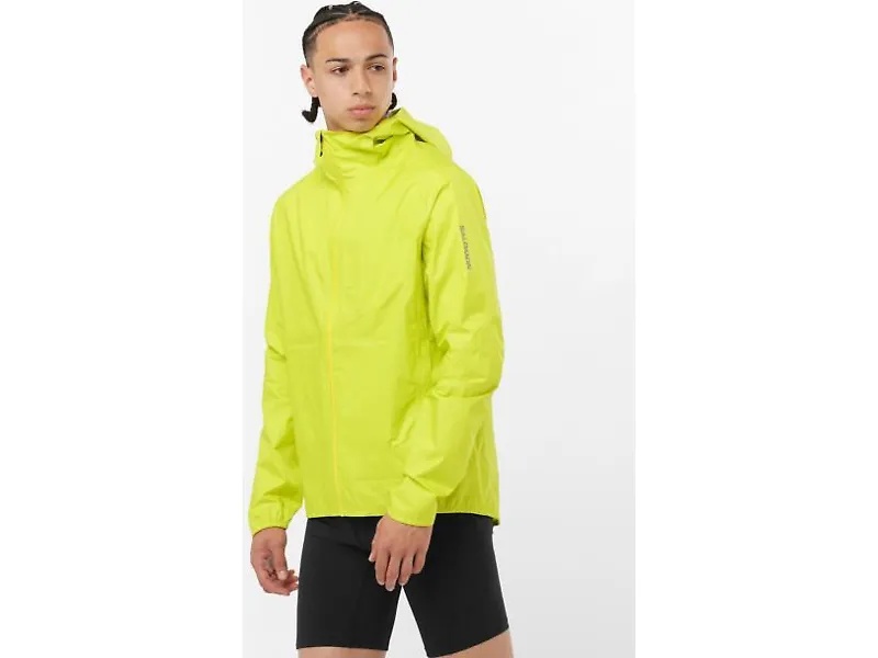 Showers—so what? Gusts of wind—so much the better. The Salomon Bonatti Waterproof Jacket isn’t put off by the weather. Ultra-light with a breathable micro-porous waterproof membrane, it'll keep you comfy and dry all year long, come road or trail. Details: - AdvancedSkin Dry Technology keeps you dry and protected from the elements, while its breathable membrane ensures optimal comfort by letting moisture escape. AdvancedSkin Dry 10K/10K: Stay dry and comfortable in any weather with 10K waterproofing and breathability. Perfect protection against rain, snow, and wind. - Mechanical stretch - Ripstop fabric that has a specific construction for enhanced durability and long-lasting performance, ensuring resistance to tears and wear in demanding conditions. - Fixed hood: The hood is securely attached to the garment for a seamless, comfortable fit. - Smart hood: Minimalist construction hood that fits without draw cords or pullers. - Smart vent: A little press button on the front of your jacket allows to keep your jacket in place while the vents are open. - Waterproof zip: Designed to keep you dry, waterproof zippers provide a fully sealed closure, preventing water from seeping through, even in the heaviest rain - Zippered chest pocket: A practical, zipped closure to keep your must-haves secure and always within reach. - Stow pocket: Keep your essentials secure and close at hand with this discreet, conveniently placed pocket. - Reflective details: Stay visible in low-light conditions with reflective details—so you can move with confidence day or night. - DWR Treatment - PFC Free