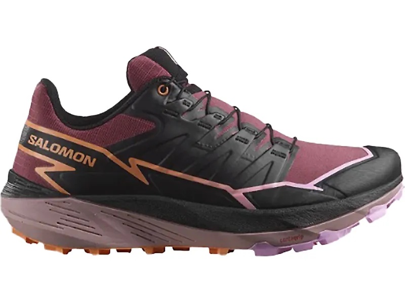 Lace up the Salomon Thundercross for your gnarliest trail runs. Rolling hills, rocky ascents and muddy singletrack—this dynamic trail shoe can handle it all. Aggressive 5 mm lugs on the outsole give you precise grip off-road, while a maximally-cushioned ride gives you the comfort and confidence to adventure all day. Details: - Upper: Sensifit™ construction gives you a precise foothold with reliable, cushy comfort. - Midsole: A springy and comfortable midsole compound delivers punch and pop while smoothing out your landings for a fluid ride. - Outsole: Aggressive 5 mm lugs provide excellent grip and traction on all kinds of technical terrain and surfaces.