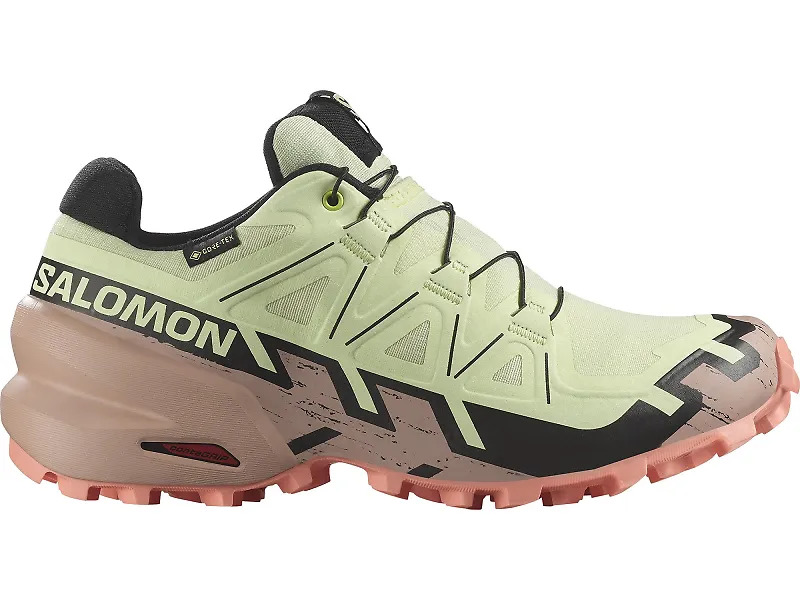 When you are looking for a running shoe to tackle tough, wet and muddy trails, look no further than the Salomon Speedcross 6 GTX. This legendary trail shoe stays true to its roots, yet somehow has even more grip and traction than ever. It features a Mud Contragrip® outsole that helps keep you upright on loose, soft, rugged or uneven surfaces. Plus, a GORE-TEX upper keeps your feet dry and comfortable when the trails get nasty. Details: - Upper: A revamped upper features Sensifit™construction for a precise, optimal foothold and a comfortable fit. The ripstop fabric is durable and keeps debris out, while also being lightweight and breathable. Salomon’s Quicklace™system gives you strong laces that tighten with one pull for easy-on, easy-off and prevent loose shoe strings from tripping you up. To top things off, a GORE-TEX membrane keeps the elements out for a dry and comfortable run. - Midsole: The EnergyCell™+ midsole foam gives you plenty of energy and rebound along with substantial cushioning and durability to go the distance. - Outsole: A knobby, Mud Contragrip® rubber outsole with 5 mm lugs gives you a grippy connection to the ground and faster mud evacuation.