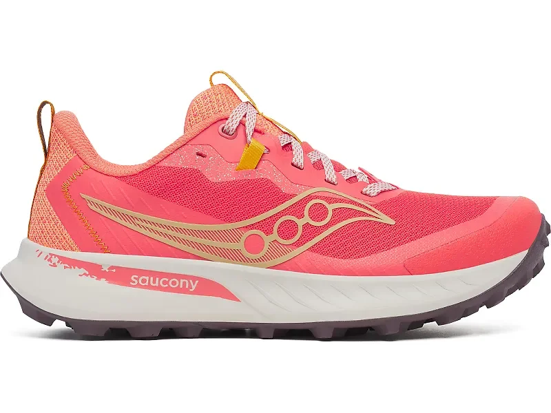 The Saucony Peregrine 15 will take you to the summit and back, no matter the terrain. Named after the fastest bird on earth, the lightweight and low-profile Peregrine 15 is designed to handle challenging trails with ease. With aggressive traction, enhanced cushioning and superior protection it delivers a nimble yet forgiving ride for any distance. Details: - Upper: The high-strength mesh upper is designed with reinforced protection in high-abrasion areas to shield you from roots and rocks, while the D-Ring gaiter compatibility keeps debris out on dusty or muddy trails. This durable construction offers a secure and adaptable fit for all-day comfort. - Midsole: A newly formulated PWRRUN foam midsole enhances cushioning, comfort and flexibility like never before. Whether you're tackling steep climbs or uneven descents, the responsive feel keeps your stride smooth and stable, offering the perfect balance of protection and agility. A forefoot rock guard adds an extra layer of defense, so you can focus on your run without distraction. - Outsole: A full-coverage PWRTRAC rubber outsole with aggressive 5 mm lugs gives you unparalleled durability and traction.