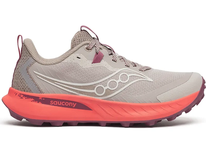 The Saucony Peregrine 15 will take you to the summit and back, no matter the terrain. Named after the fastest bird on earth, the lightweight and low-profile Peregrine 15 is designed to handle challenging trails with ease. With aggressive traction, enhanced cushioning and superior protection it delivers a nimble yet forgiving ride for any distance. Details: - Upper: The high-strength mesh upper is designed with reinforced protection in high-abrasion areas to shield you from roots and rocks, while the D-Ring gaiter compatibility keeps debris out on dusty or muddy trails. This durable construction offers a secure and adaptable fit for all-day comfort. - Midsole: A newly formulated PWRRUN foam midsole enhances cushioning, comfort and flexibility like never before. Whether you're tackling steep climbs or uneven descents, the responsive feel keeps your stride smooth and stable, offering the perfect balance of protection and agility. A forefoot rock guard adds an extra layer of defense, so you can focus on your run without distraction. - Outsole: A full-coverage PWRTRAC rubber outsole with aggressive 5 mm lugs gives you unparalleled durability and traction.