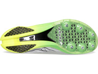 Fast is the only option when you lace up the women's Saucony Endorphin Cheetah track spikes. Inspired by the fastest land animal, these premium track spikes are built for speed and designed to help you set new personal bests. The springy PWRRUN HG foam midsole gives you that nice pop during toe-off to energize your run, while the carbon-fiber plate with SPEEDROLL technology propels you forward. The Pebax spike plate offers durability and structure while keeping weight to a minimum, so you can fly past the competition. Plus, with its vegan construction and use of recycled materials, you can feel good about your impact on the environment, too. With six spikes for extra traction and power during your final kick toward the finish, the Saucony Endorphin Cheetah is perfect for mid-distance and distance runners who won't settle when it comes to speed, weight and performance.